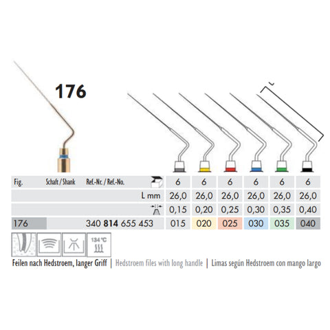 La lima Hedstroem endodóncica angulada se caracteriza por su mango largo, que permite un trabajo preciso. Esta lima se utiliza para la preparación del conducto radicular (longitud: 26 mm).