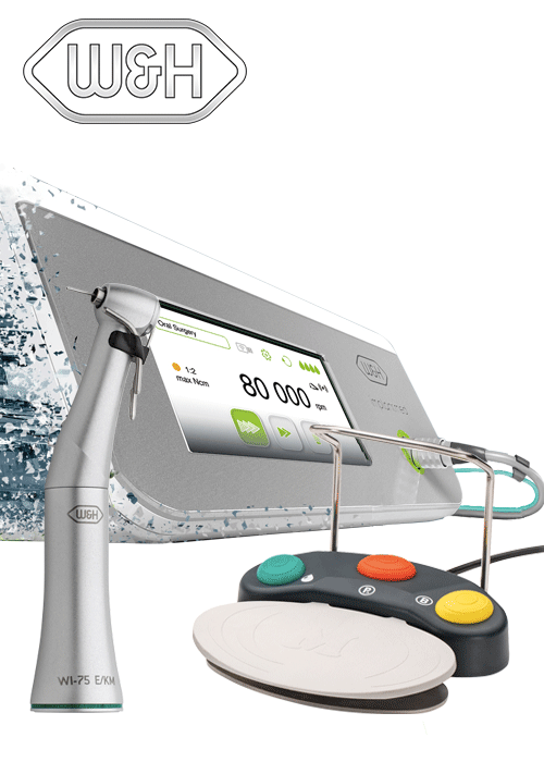 en el hueso, así como por el control del torque automático y el módulo Osstell ISQ de W&H, que puede adquirirse como accesorio, para medir la estabilidad de los implantes.